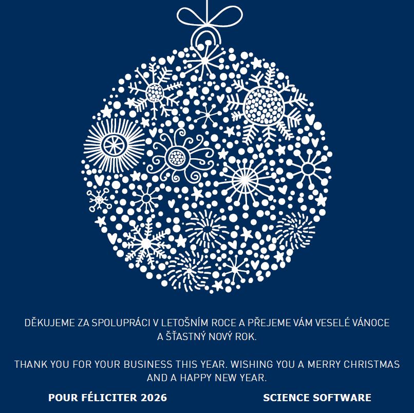 dovolte mi, abych Vám, jménem svým i jménem pracovníků Science Software poděkoval za projevenou přízeň v uplynulém roce a popřál Vám optimistické a šťastné vykročení do nového roku 2025. Přeji Vám spoustu spokojenosti v profesním životě, stejně tak v životě osobním.
